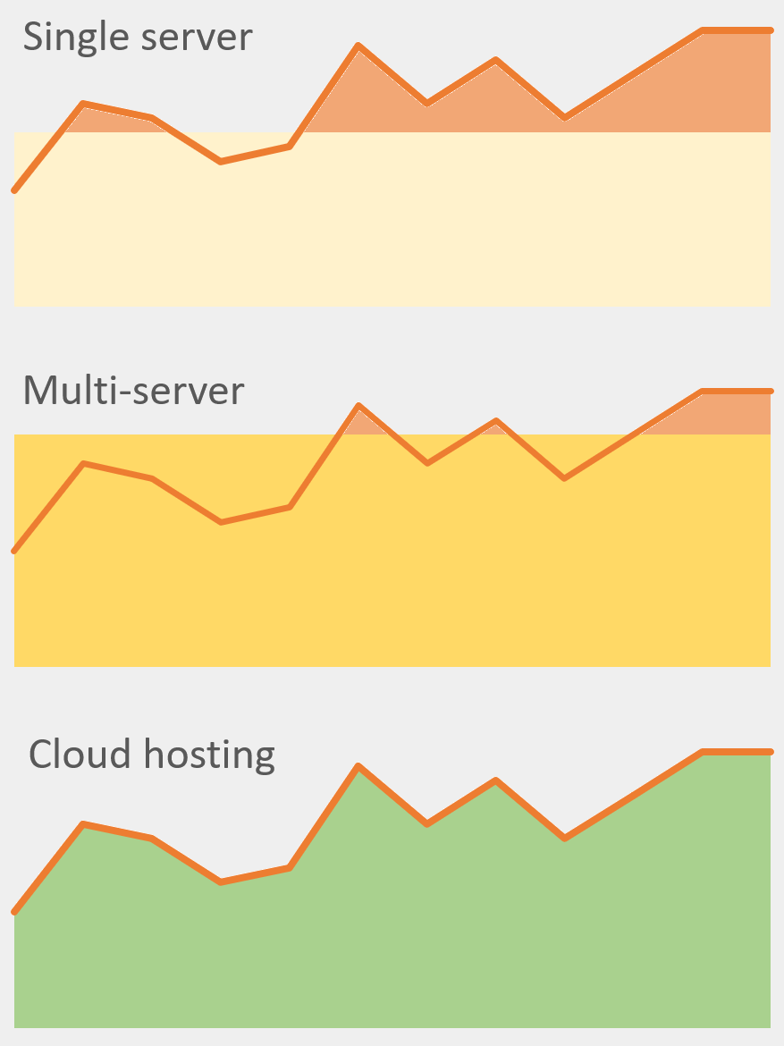 Le graphique donné comme exemple se concentre sur une seule chose : la meilleure prise en charge des visiteurs d’un site e-commerce par une solution cloud. Vous pouvez ajouter une deuxième dimension en signalant les périodes ou les autres types de serveurs ne sont pas utilisés.