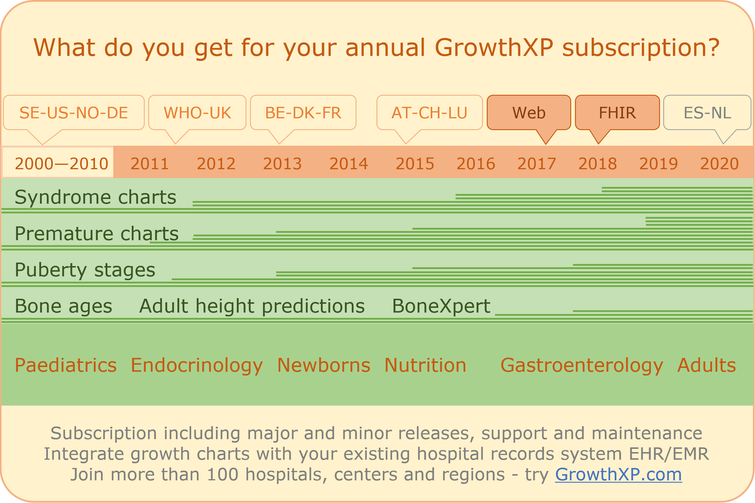 Showing your product’s evolution is a key step to show how are you serving your customers, why should they be loyal to you, and why are you deserving an annual fee (here exemplified by GrowthXP, a module for monitoring children’s growth)